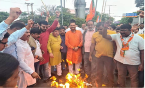 राँची :  प्रदेश भाजपा ने गुरुवार को कांग्रेस प्रमुख सोनिया गांधी, सांसद राहुल गांधी और कांग्रेस के राष्ट्रीय प्रवक्ता का पुतला दहन किया. राष्ट्रपति कैंडिडेट द्रौपदी मुर्मू पर अजय कुमार की टिप्पणी को लेकर गहरी नाराजगी भी जतायी. भाजपा रांची महानगर के तत्वावधान में हरमू चौक पर आयोजित पुतला दहन कार्यक्रम में पार्टी के प्रदेश अध्यक्ष एवं राज्यसभा सांसद दीपक प्रकाश भी उपस्थित थे. इस दौरान उन्होंने कहा कि कांग्रेस पार्टी के घटिया बयान से आज पूरे देश को पता चल गया कि इस पार्टी को आदिवासियों के प्रति कितनी घृणा है.